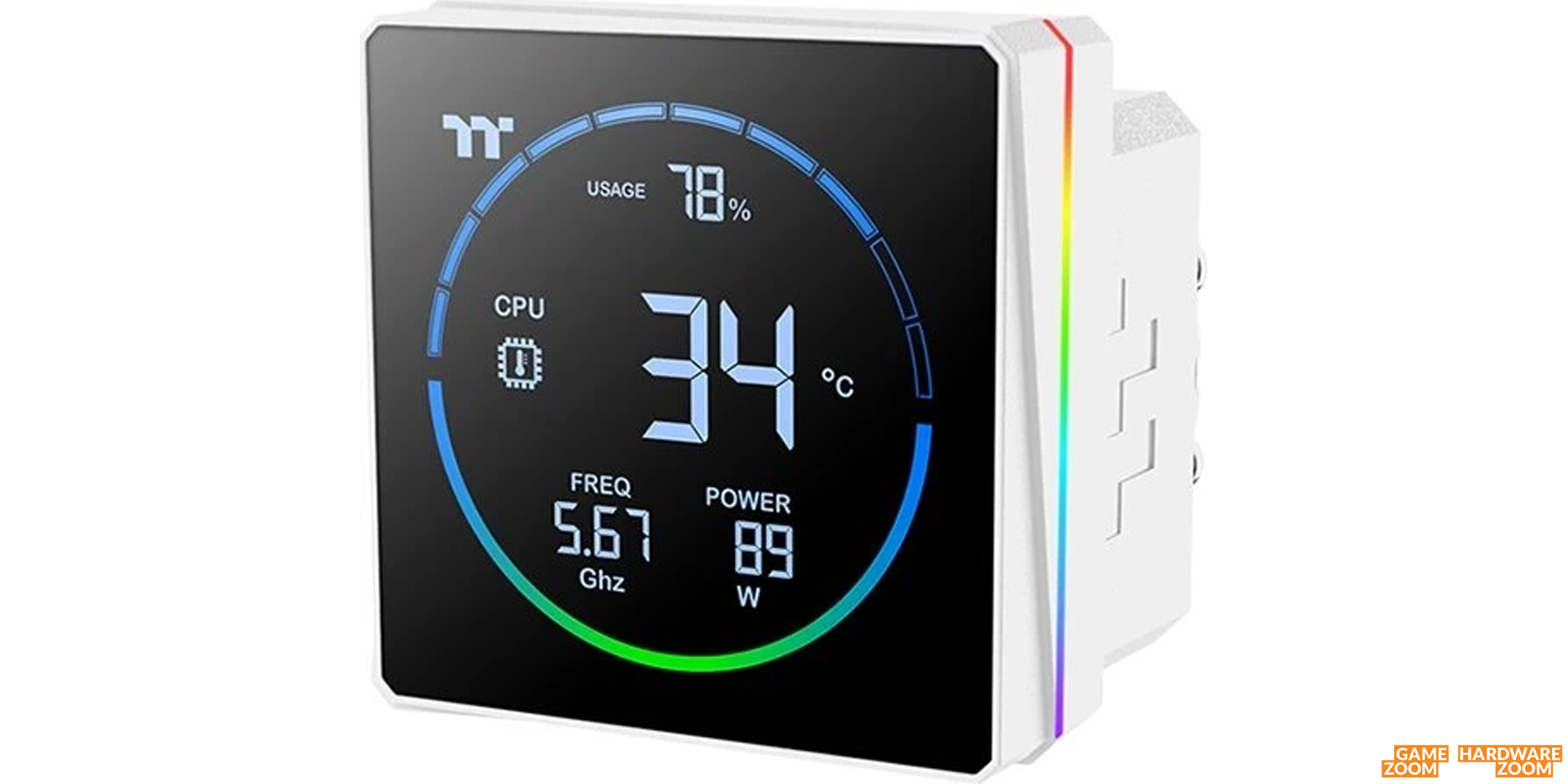 Das LCD-Display zeigt Systeminformationen in Echtzeit (CPU-Temperatur, Taktfrequenz und Leistungsaufnahme) an. Für die Nutzung wird die TT Segment Code Software benötigt.